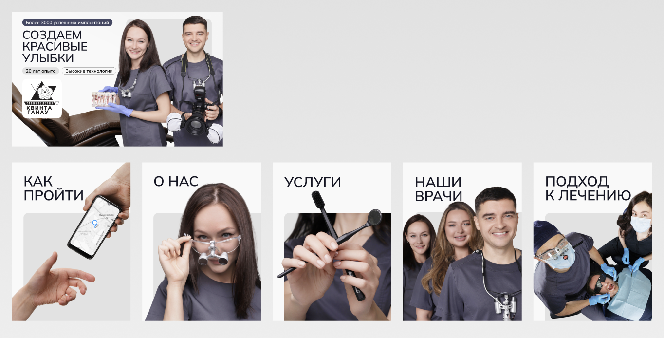 - Визуальные материалы карточки не отражали качественного и уникального подхода стоматологии, что не помогало привлечь внимание пользователей.