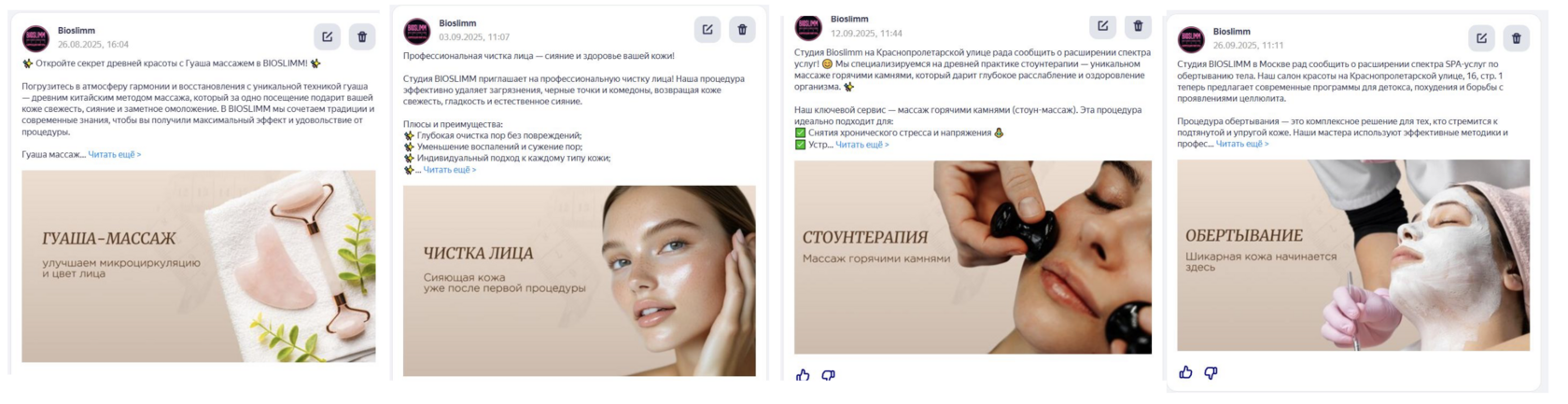 Добавили регулярные публикации с вшитыми ключевыми словами, чтобы карточка чаще попадала в поисковую выдачу Яндекса по актуальным запросам.