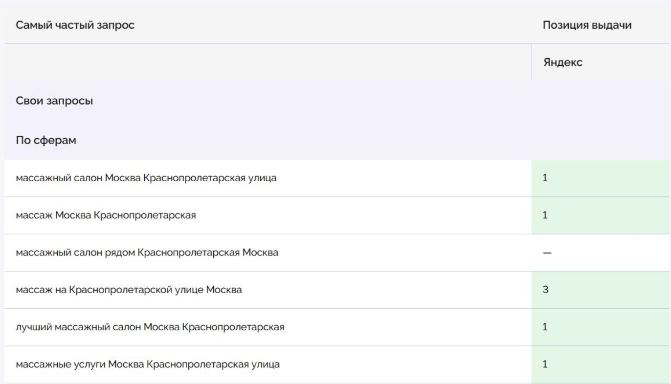 - Место компании в разделе конкуренты