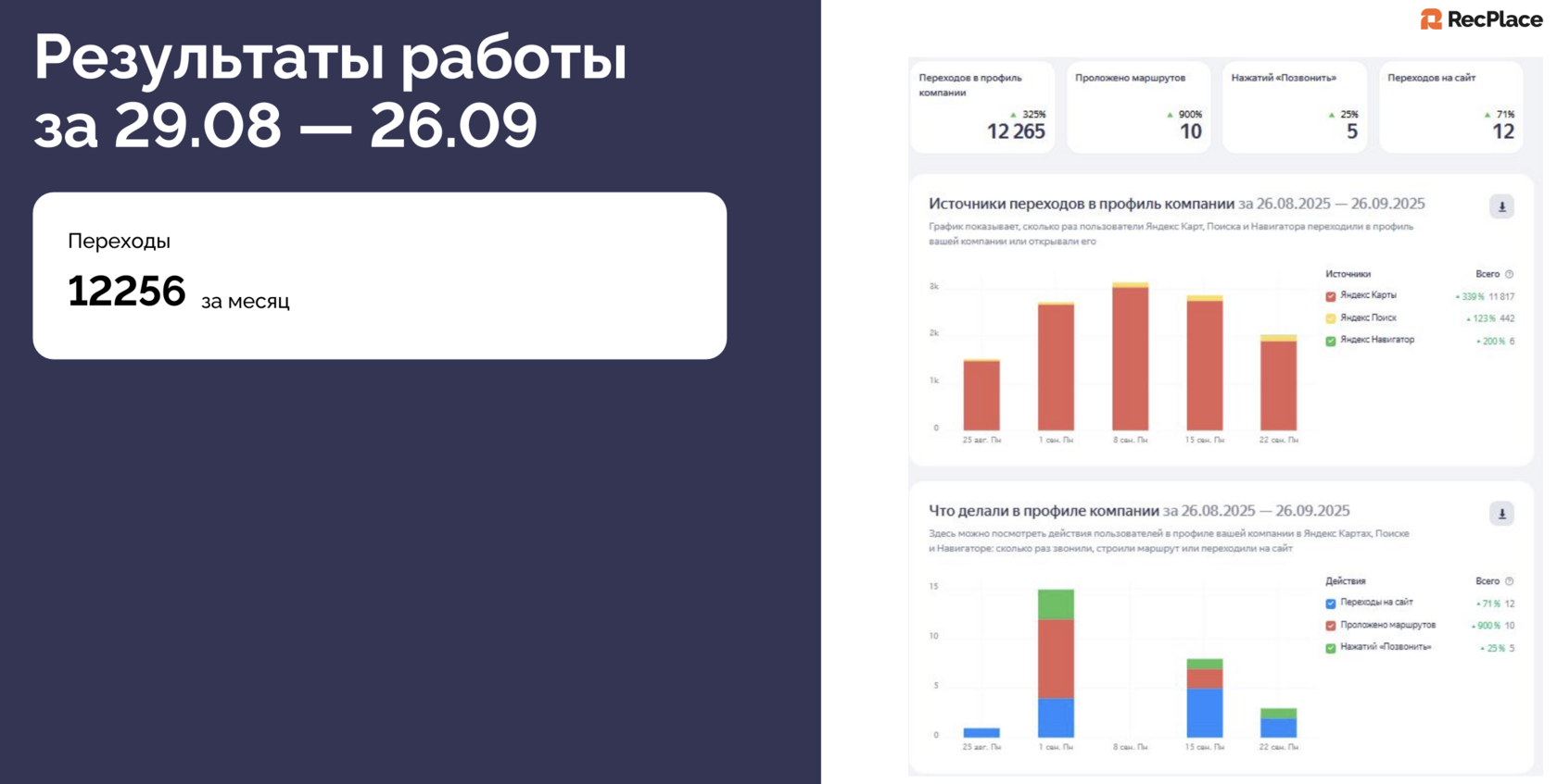 - Переходы с Яндекс.Карт: 12 256 за месяц