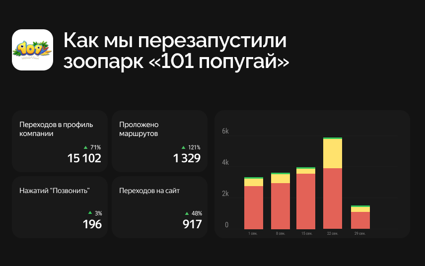 До старта проекта карточка зоопарка «101 попугай» на Яндекс.Картах не привлекала новых посетителей. Алгоритмы её «не видели», пользователи — не кликали.