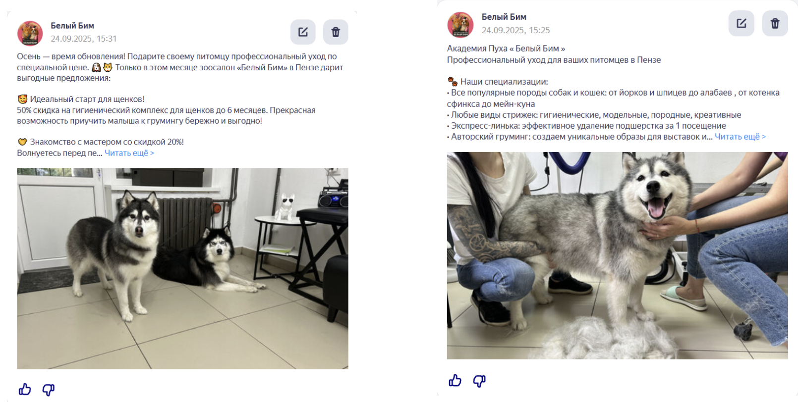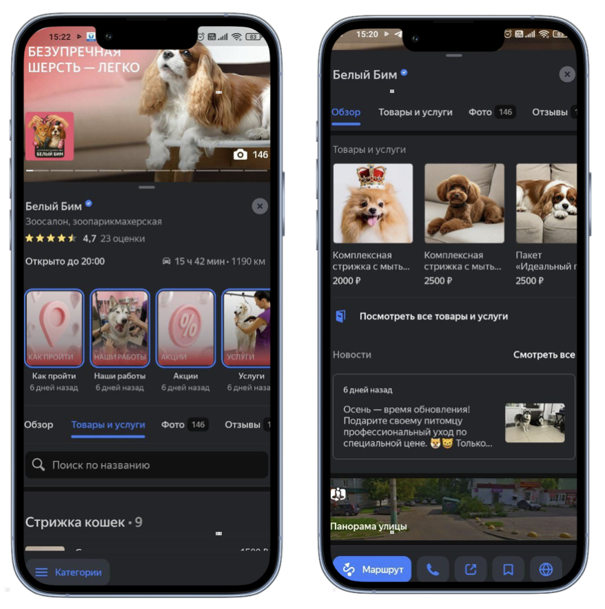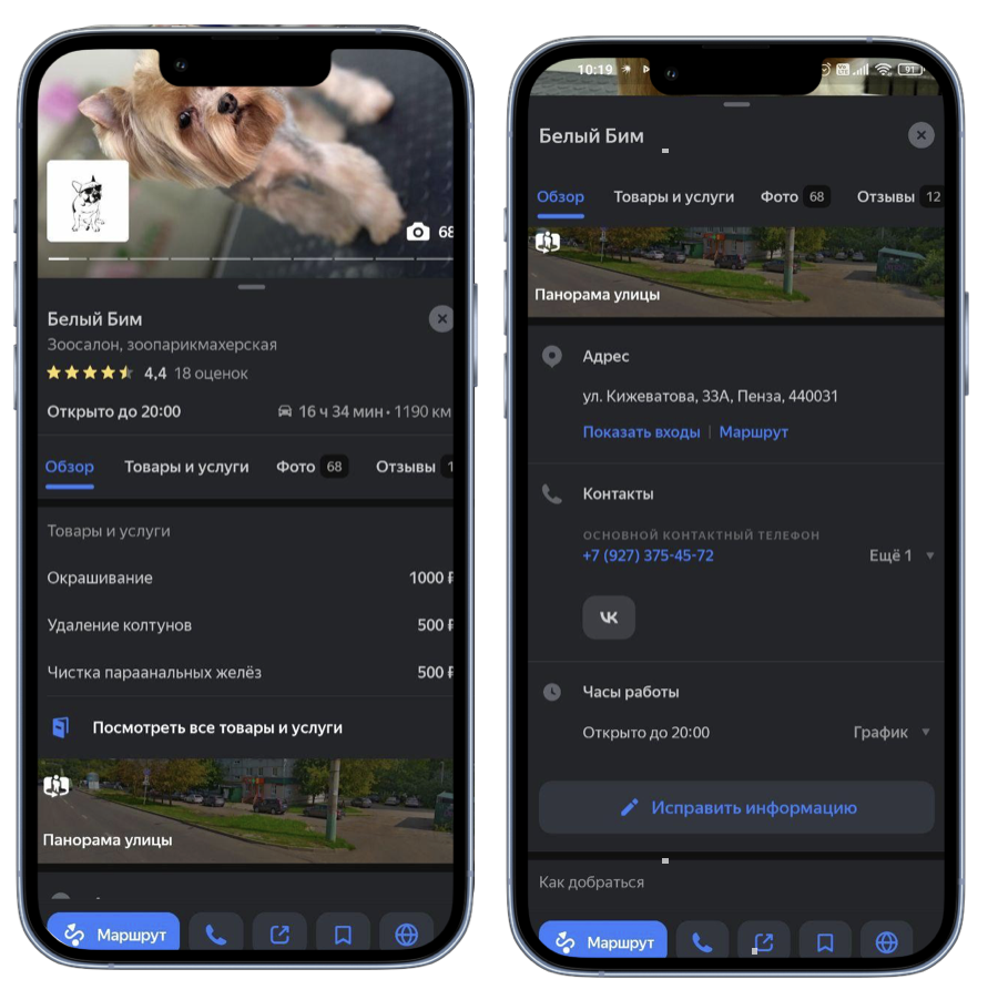 Когда команда «Белый бим» обратилась к нам, карточка на Яндекс.Картах практически не работала как витрина: была устаревшей и «невидимой» для алгоритмов.